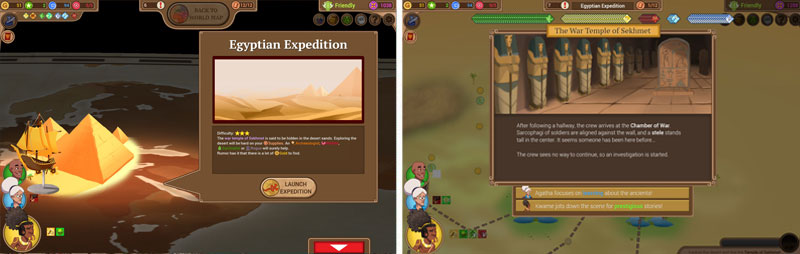 El primer que us recomanem és Renowned Explorers: International Society (dels holandesos Abbey Games, 2015), disponible per PC, Mac i Linux. En aquest interessant joc d’estratègia el jugador ha de conduir a l’èxit una trinca d’exploradors, que pot triar d’entre tots els disponibles, i convertir-los en els més famosos del món. És una clara i amable paròdia de les novel·les vernianes i de les pel·lícules d’aventures a l’estil de Les mines del rei Salomó, que proposa elements sorprenents com la inclusió en el combat, basat en un sistema de pedra-paper-tisora, del menyspreu o l’amabilitat. I en ell, podem triar que un dels viatges ens porti a l’antic Egipte, per lluitar contra mòmies que només volen unes quantes abraçades o convèncer la deessa Sekhmet que no val la pena ressuscitar i començar una guerra. Amb aspecte de joc de taula, i fàcil d’aprendre (tot i que difícil de dominar), les hilarants aventures dels nostres exploradors són francament recomanables. I amb les seves expansions podeu trobar el Sant Graal, que, en paraules del joc, és com el Sant Graal de l’exploració!
